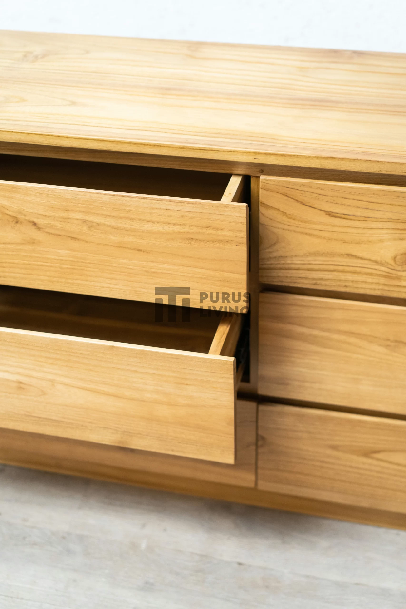 Bufet minimalis kayu jati ini menggunakan bahan baku Kayu Jati solid (Teak Wood) dan ditambah dengan konstruksi/purus. Produk-produk dari Purus Living dekerjakan oleh para profesional dibidang furniture dari Jepara. Dikerjakan dengan teliti dan cermat sehingga furniture ini menjadi produk yang kokoh, kuat dan memiliki fungsi guna.