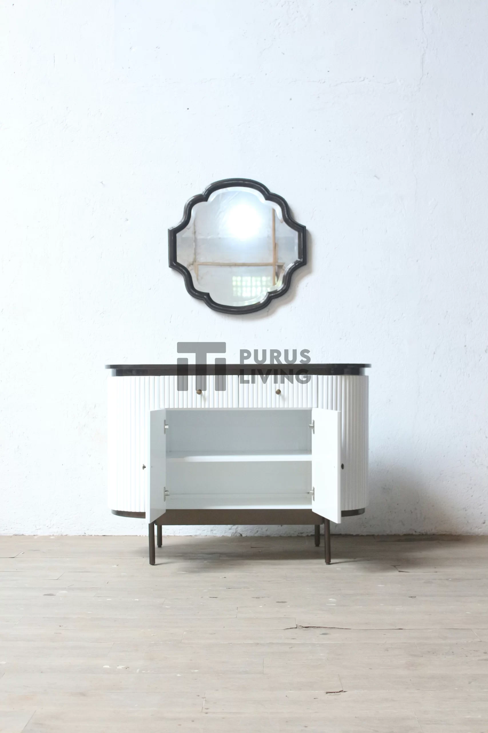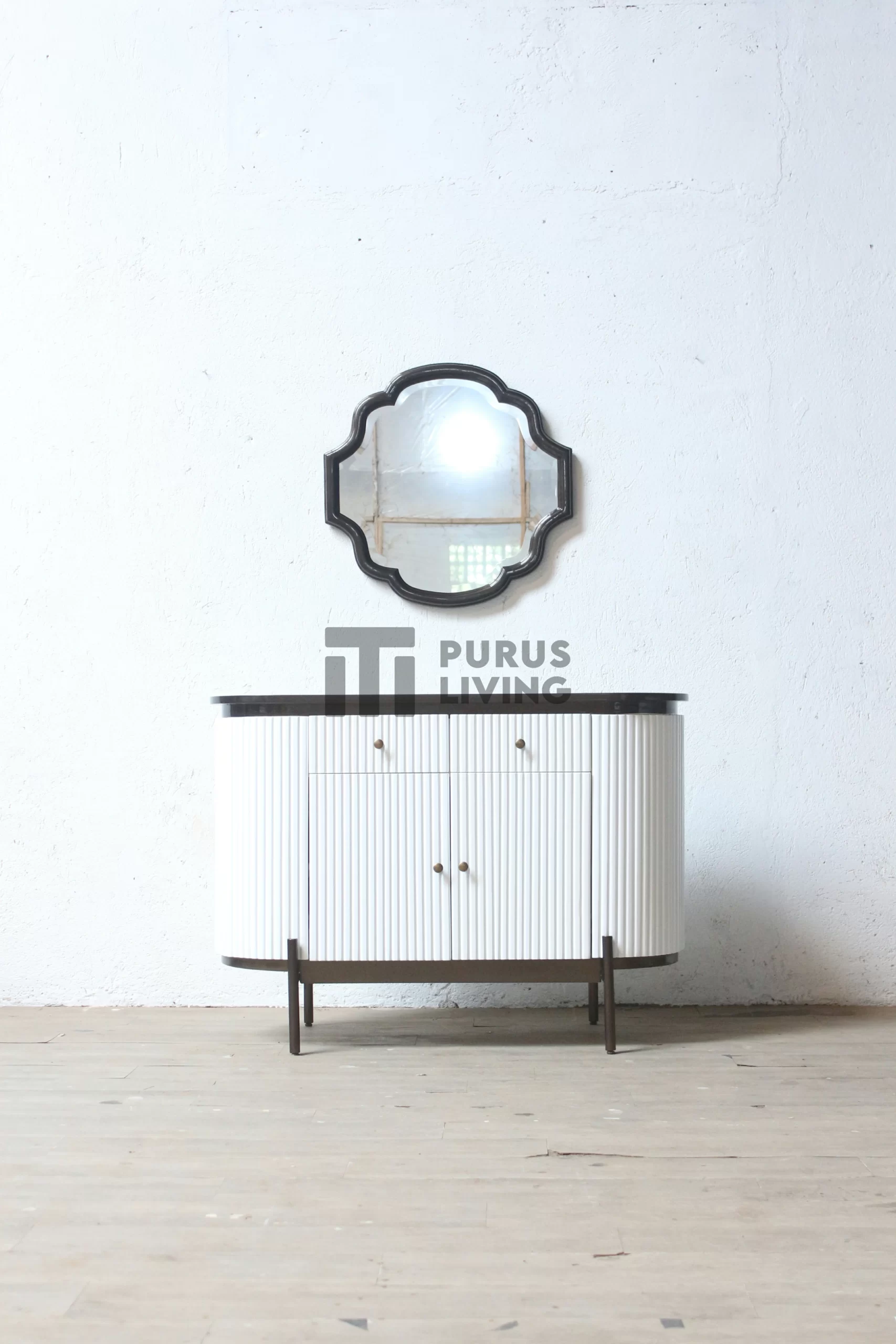 Pertama kami sampaikan bahwa Purus Living melayani custom finishing untuk para konsumen, sehingga konsumen berhak menentukan warna finishing produk yang dikehendaki. Untuk produk ini kami menggunakan finishing White Duco. Finishing Duco sangat cocok bila dipadankan dengan produk-produk yang terbuat dari kayu jati solid (Teak Wood), Karena dapat memberikan kesan yang bersih, elegan dan mewah.