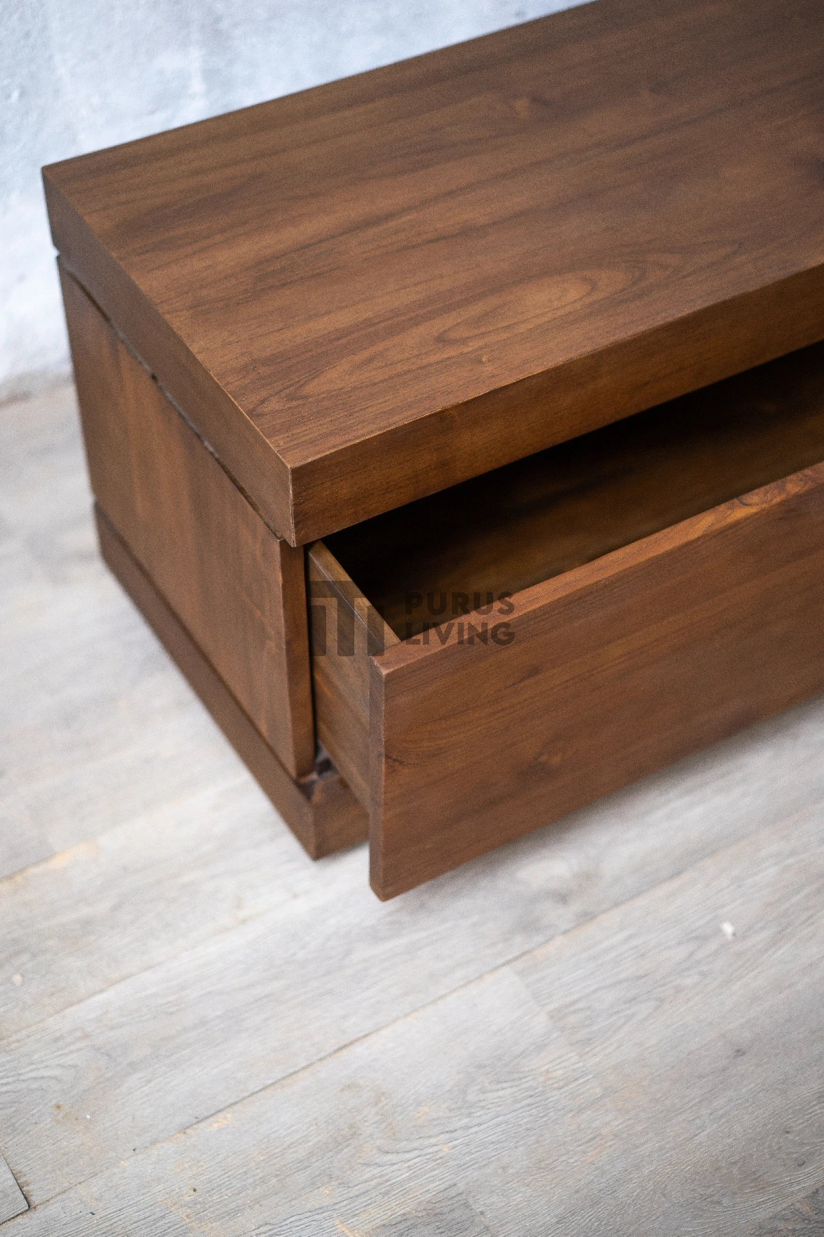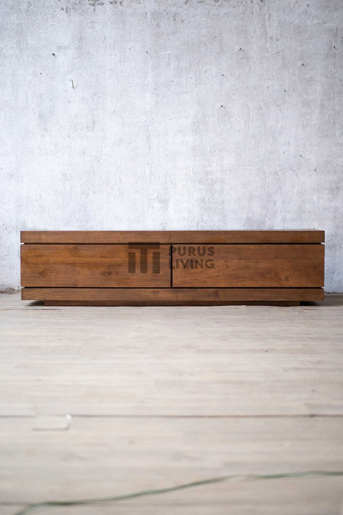 Bufet TV minimalis modern ini menggunakan bahan baku Kayu Jati solid (Teak Wood) dan ditambah dengan konstruksi/purus. Produk-produk dari Purus Living dekerjakan oleh para profesional dibidang furniture dari Jepara. Dikerjakan dengan teliti dan cermat sehingga furniture ini menjadi produk yang kokoh, kuat dan memiliki fungsi guna.