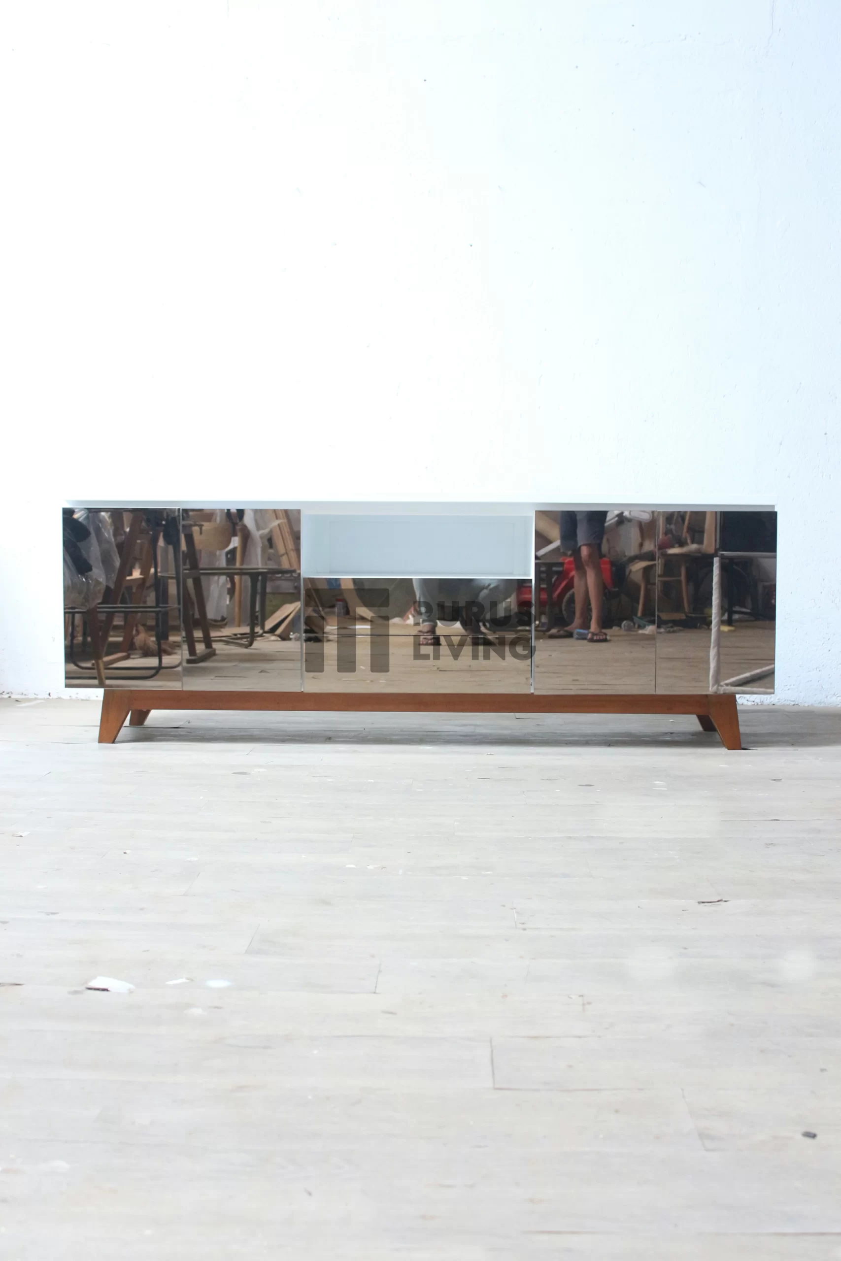 Dengan desain yang modern dan elegan, bufet tv ini memiliki nilai estetika tersendiri, kemudian dengan menggunakan bahan baku berupa full kayu solid membuat bufet ini memiliki daya tarik tambahan dan tentunya memiliki kekuatan yang tidak diragukan lagi, dengan kata lain furniture memiliki kualitas yang sangat baik. Tentunya bufet tv ini dapat bertahan dalam waktu yang lama.