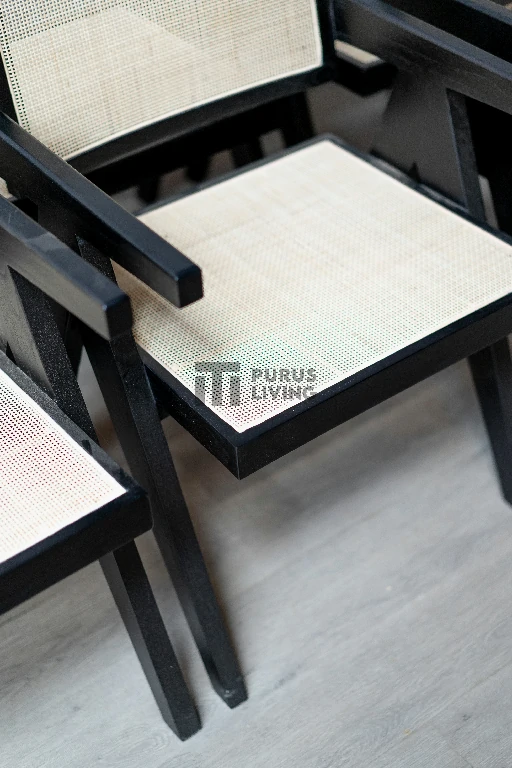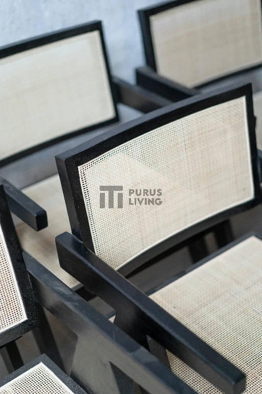 Kursi makan rotan minimalis ini menggunakan bahan baku Kayu Jati solid (Teak Wood) dan ditambah dengan konstruksi/purus. Produk-produk dari Purus Living dekerjakan oleh para profesional dibidang furniture dari Jepara. Dikerjakan dengan teliti dan cermat sehingga furniture ini menjadi produk yang kokoh, kuat dan memiliki fungsi guna.