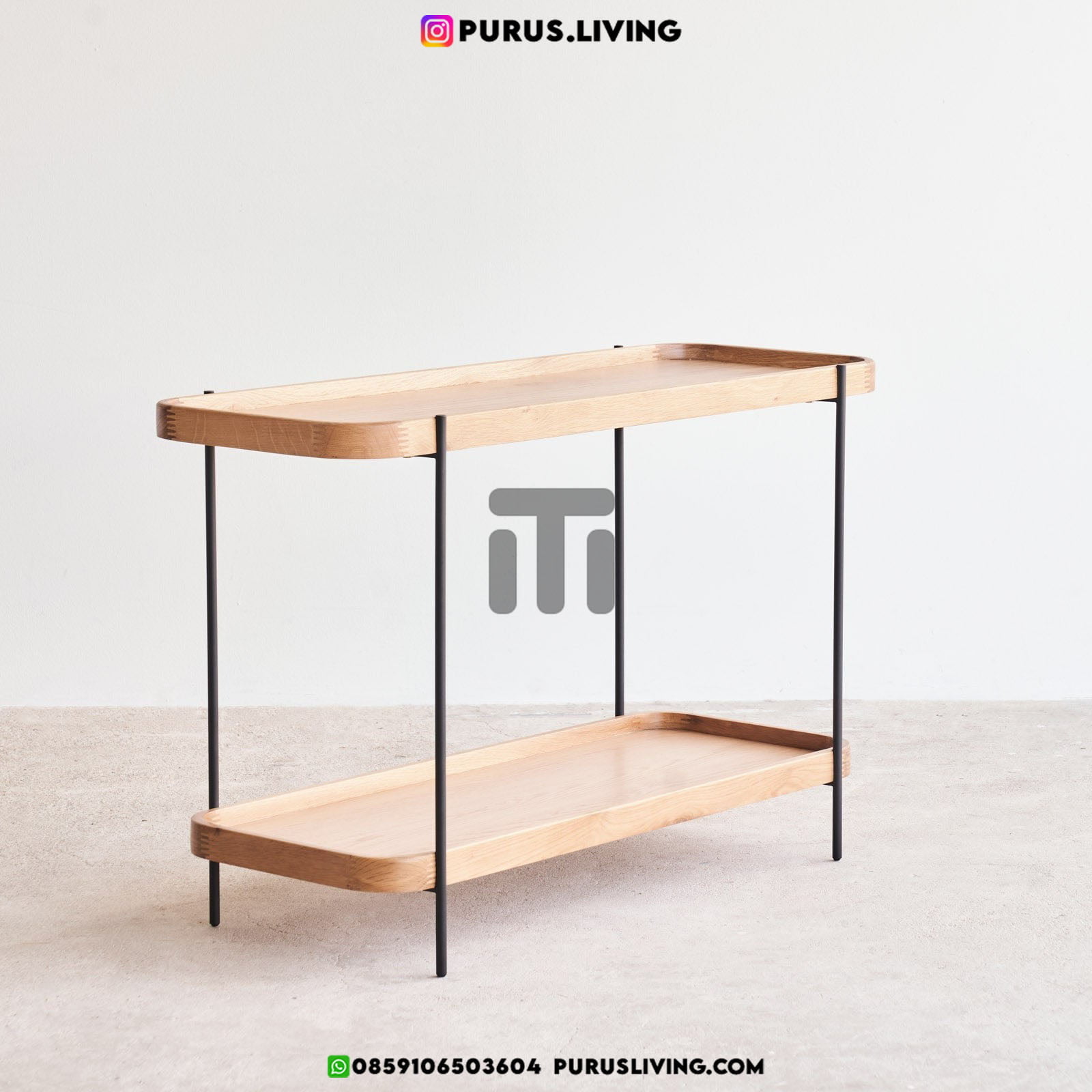 Meja konsul minimalis aesthetic ini menggunakan bahan baku Kayu Jati solid (Teak Wood) dan ditambah dengan konstruksi/purus. Produk-produk dari Purus Living dekerjakan oleh para profesional dibidang furniture dari Jepara. Dikerjakan dengan teliti dan cermat sehingga furniture ini menjadi produk yang kokoh, kuat dan memiliki fungsi guna.