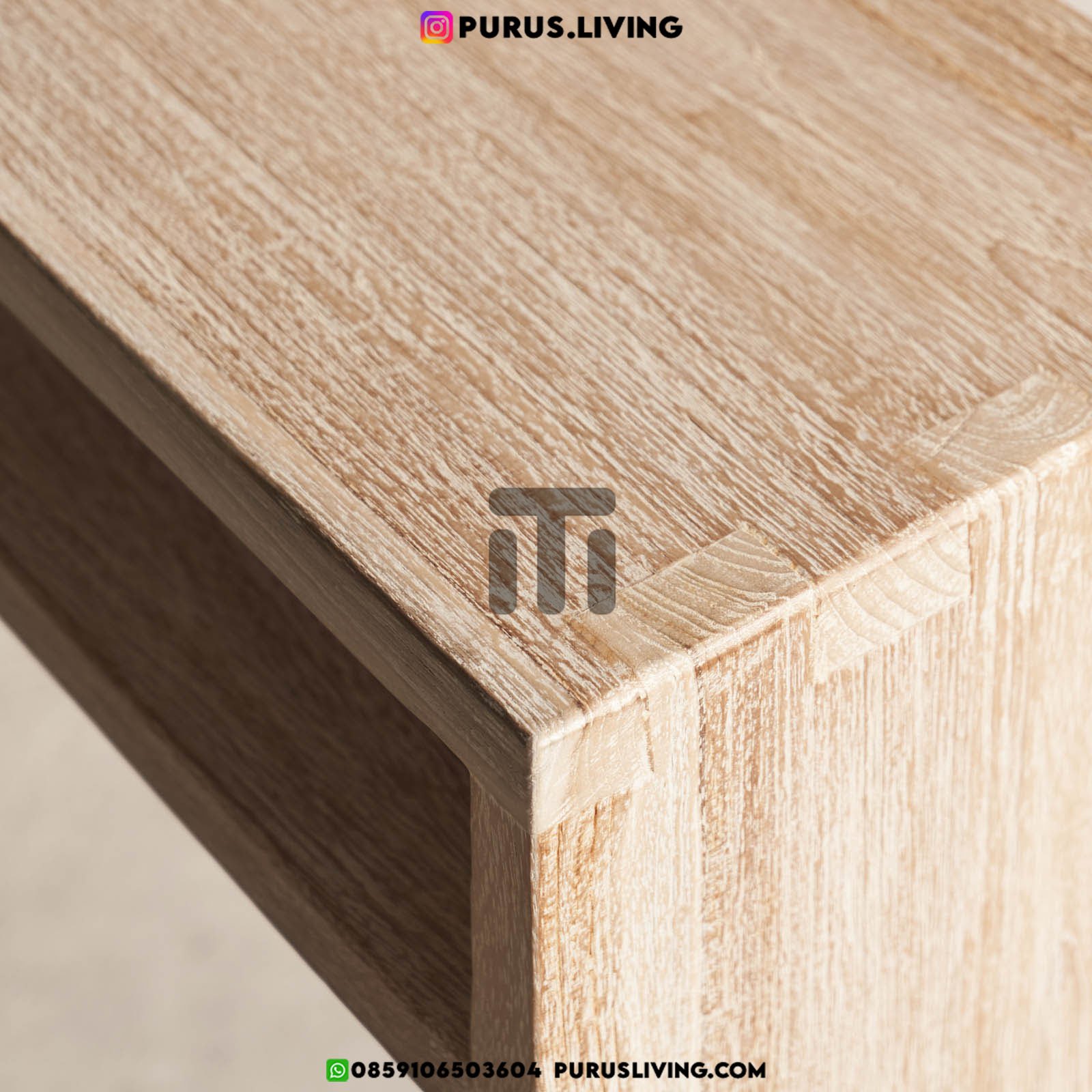 Pertama kami sampaikan bahwa Purus Living melayani custom finishing untuk para konsumen, sehingga konsumen berhak menentukan warna finishing produk yang dikehendaki. Untuk produk ini kami menggunakan finishing Natural. Finishing natural sangat cocok bila dipadankan dengan produk-produk yang terbuat dari kayu jati solid (Teak Wood), Karena dapat memberikan kesan yang elegan dan mewah serta tiidak menghilangkan aksen natural kayu.