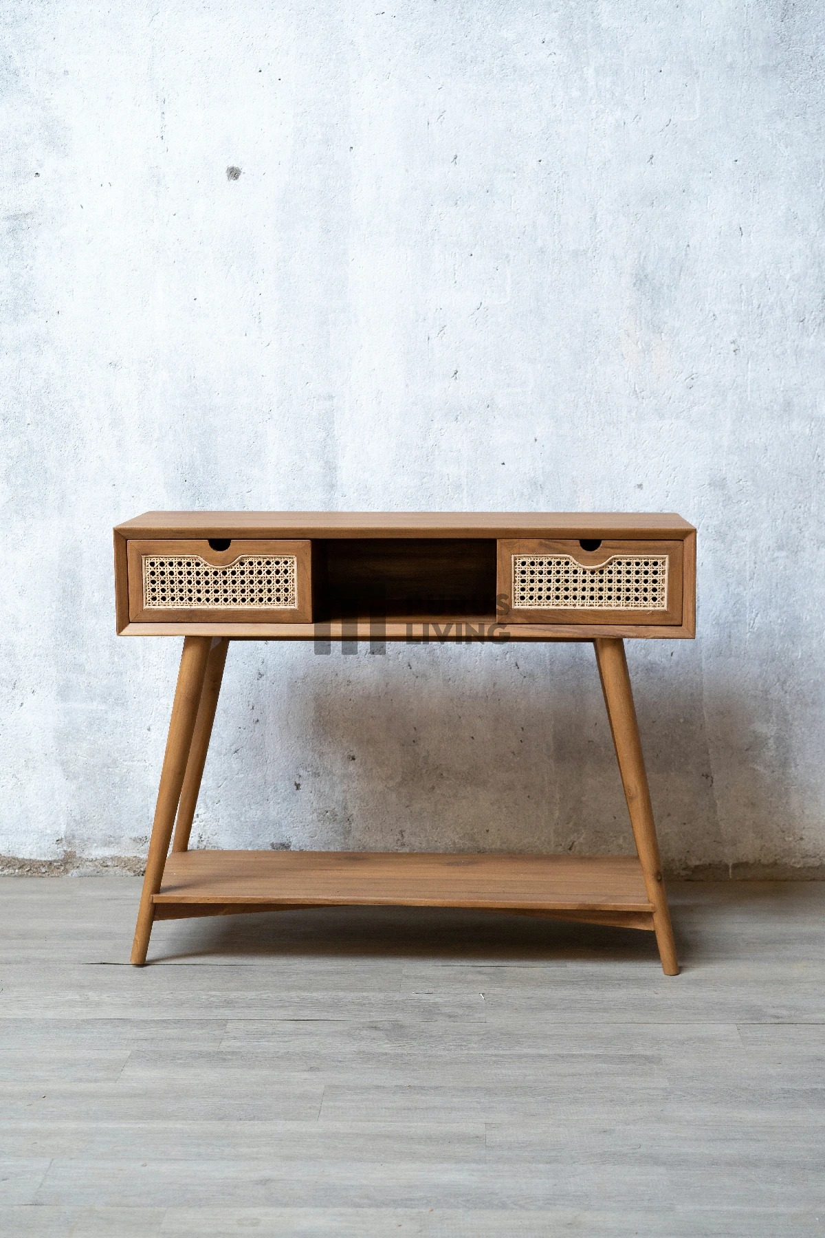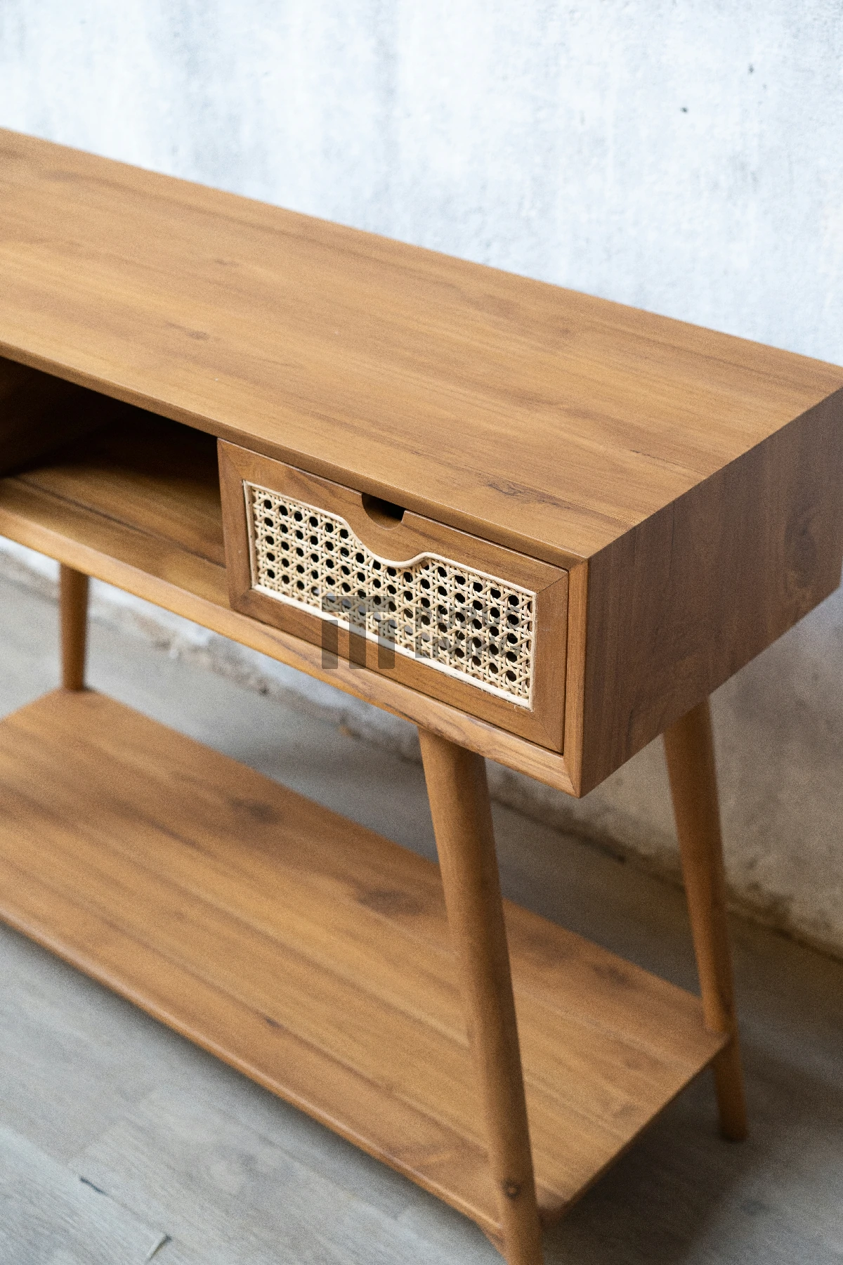 Dengan desain yang modern dan elegan, meja konsul ini memiliki nilai estetika tersendiri, kemudian dengan menggunakan bahan baku berupa full kayu solid membuat meja konsul ini memiliki daya tarik tambahan dan tentunya memiliki kekuatan yang tidak diragukan lagi, dengan kata lain furniture memiliki kualitas yang sangat baik. Tentunya meja konsul ini dapat bertahan dalam waktu yang lama.