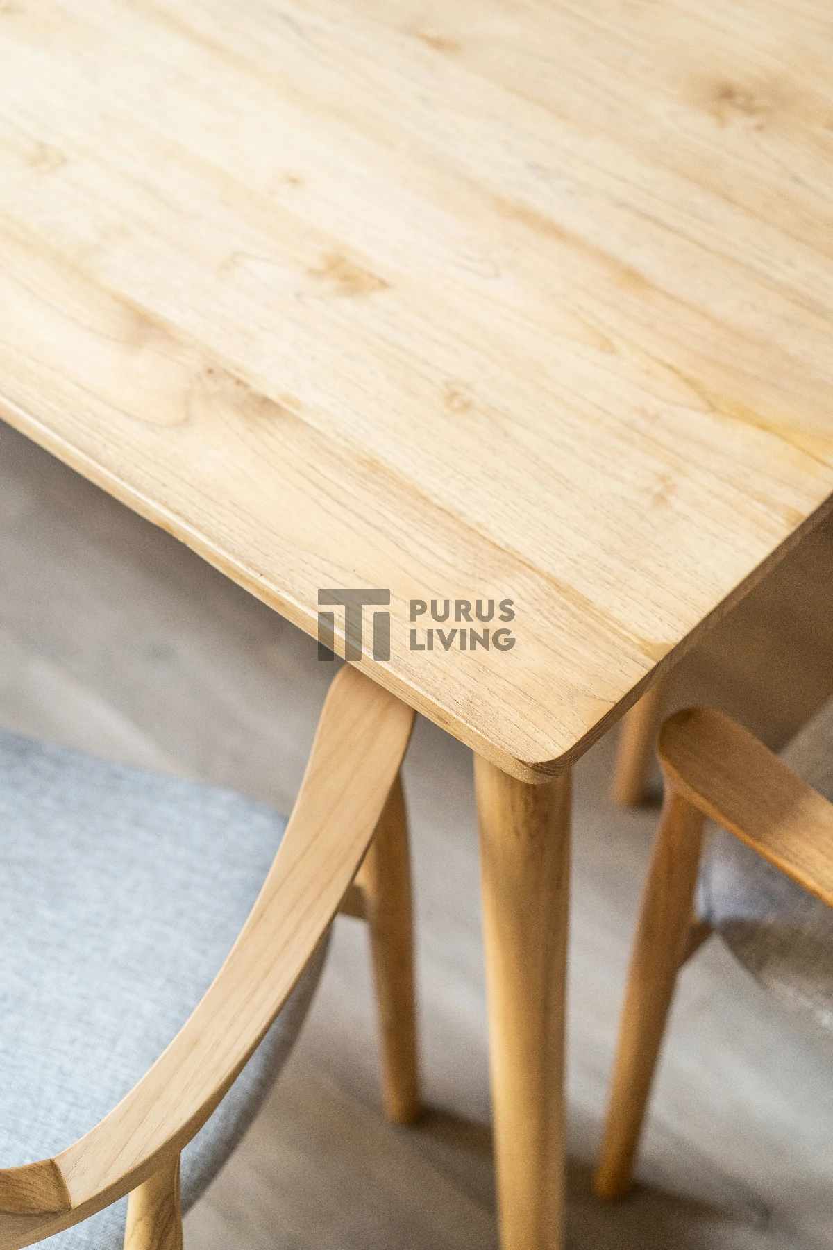 Pertama kami sampaikan bahwa Purus Living melayani custom finishing untuk para konsumen, sehingga konsumen berhak menentukan warna finishing produk yang dikehendaki. Untuk produk ini kami menggunakan finishing Natural Light Bleach. Finishing natural sangat cocok bila dipadankan dengan produk-produk yang terbuat dari kayu jati solid (Teak Wood), Karena tidak menghilangkan urat dan motif alami kayu.