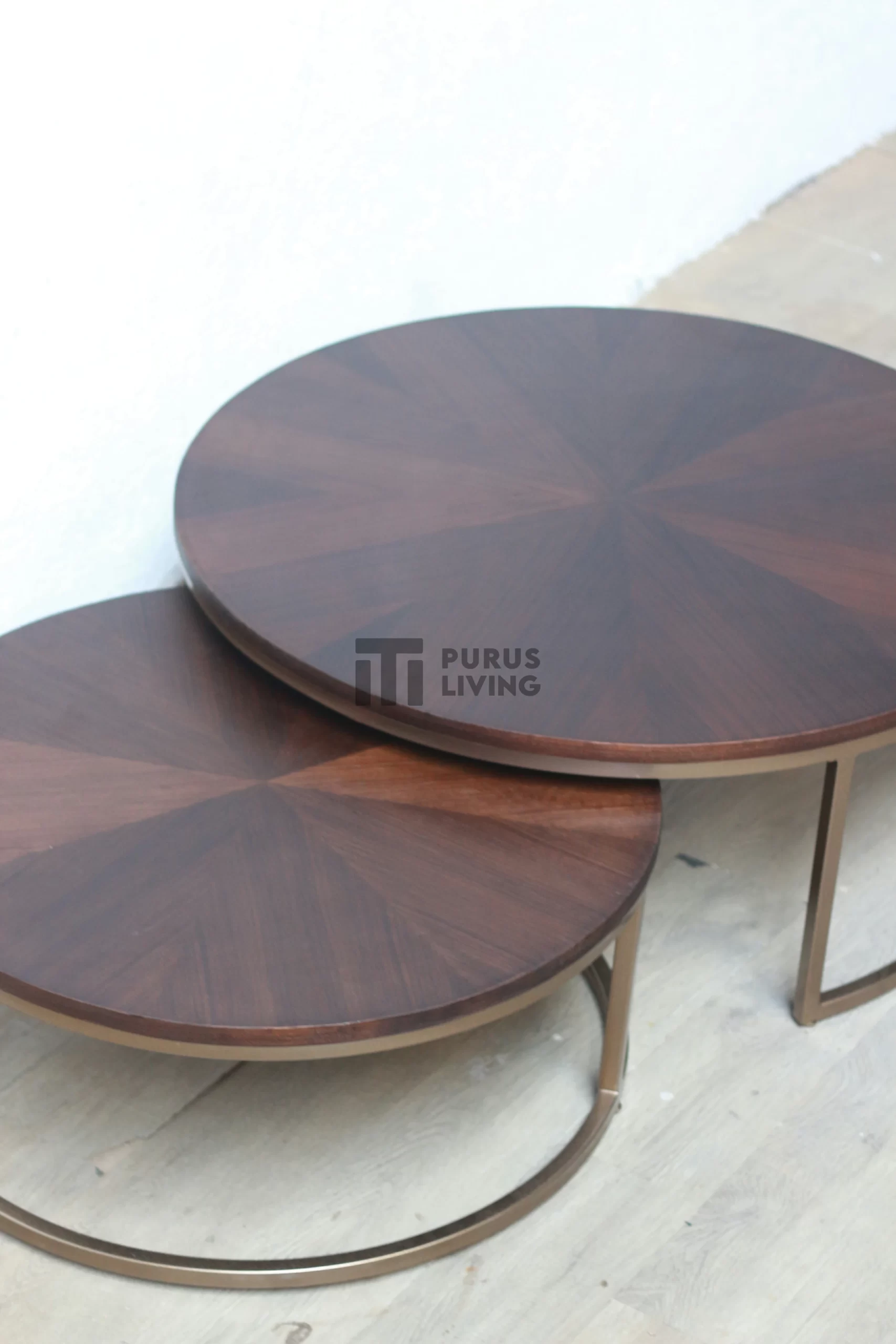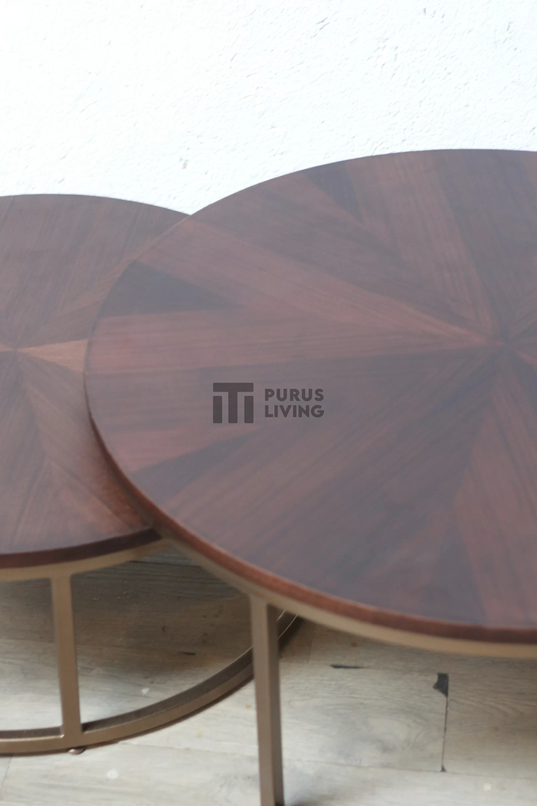 Pertama kami sampaikan bahwa Purus Living melayani custom finishing untuk para konsumen, sehingga konsumen berhak menentukan warna finishing produk yang dikehendaki. Untuk produk ini kami menggunakan finishing Natural Dark Brown dan Gold Duco untuk bagian rangka. Finishing natural sangat cocok bila dipadankan dengan produk-produk yang terbuat dari kayu jati solid (Teak Wood), Karena dapat memberikan kesan yang elegan dan mewah serta tiidak menghilangkan aksen natural kayu.