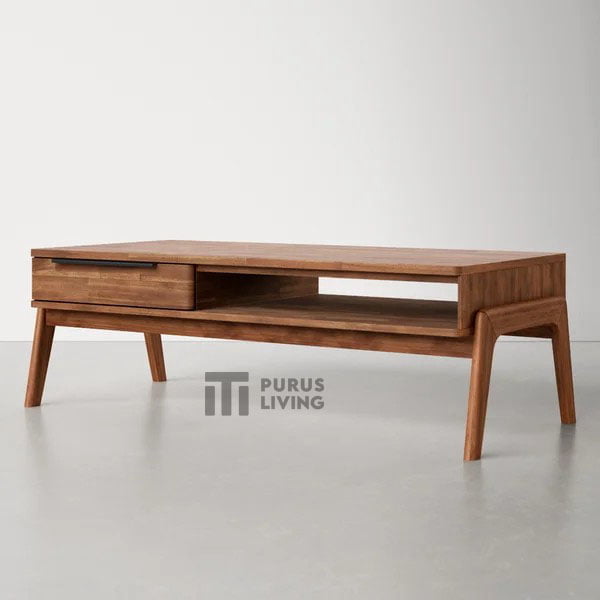 Meja Tamu Minimalis kayu jati ini menggunakan bahan baku Kayu Jati solid (Teak Wood) dan kaca  ditambah dengan konstruksi/purus. Produk-produk dari Purus Living dekerjakan oleh para profesional dibidang furniture dari Jepara. Dikerjakan dengan teliti dan cermat sehingga furniture ini menjadi produk yang kokoh, kuat dan memiliki fungsi guna.