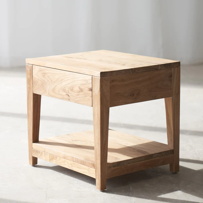 Dengan desain yang modern dan elegan, nakas ini memiliki nilai estetika tersendiri, kemudian dengan menggunakan bahan baku berupa full kayu solid membuat bedside table ini memiliki daya tarik tambahan dan tentunya memiliki kekuatan yang tidak diragukan lagi, dengan kata lain furniture memiliki kualitas yang sangat baik. Tentunya nakas ini dapat bertahan dalam waktu yang lama.