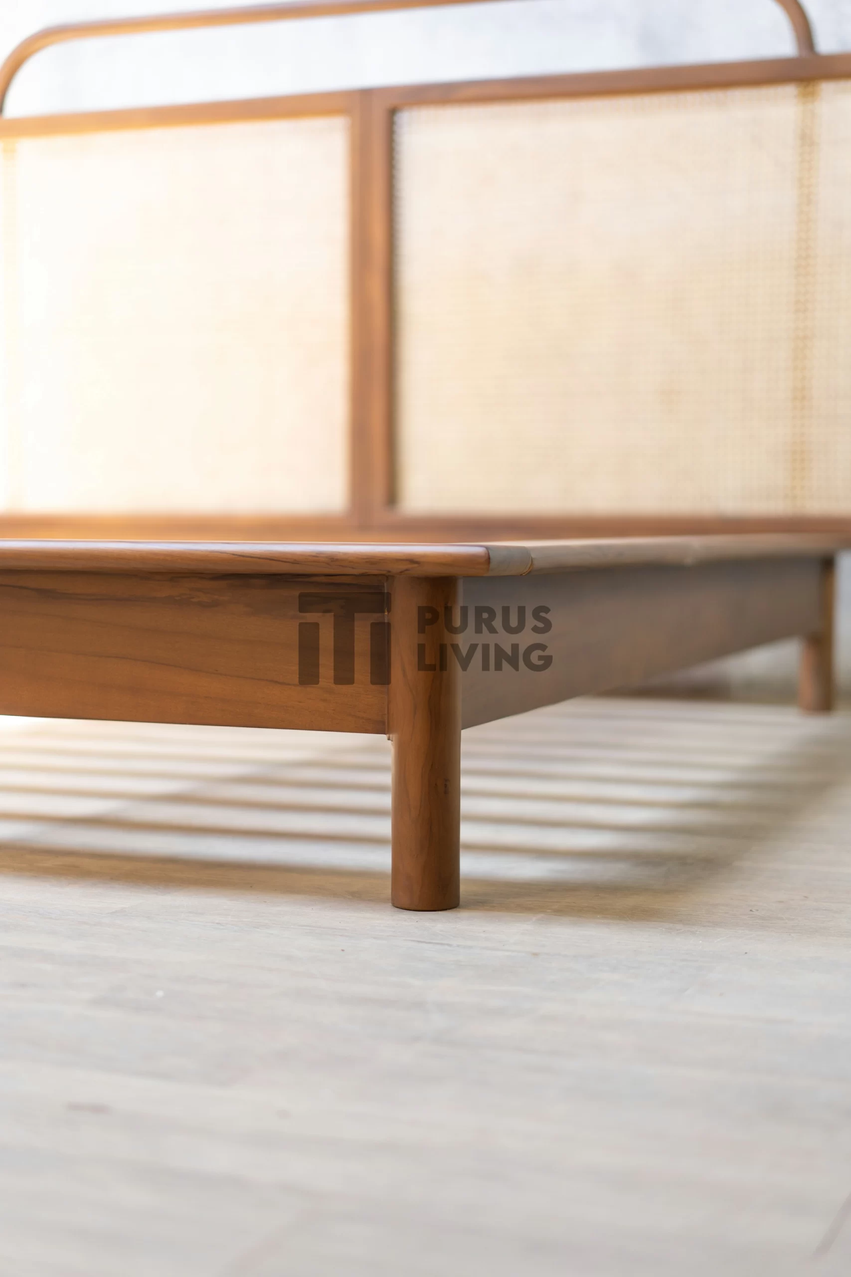 Tempat tidur minimalis rotan ini menggunakan bahan baku Kayu Jati solid (Teak Wood) dan ditambah dengan konstruksi/purus. Produk-produk dari Purus Living dekerjakan oleh para profesional dibidang furniture dari Jepara. Dikerjakan dengan teliti dan cermat sehingga furniture ini menjadi produk yang kokoh, kuat dan memiliki fungsi guna.
